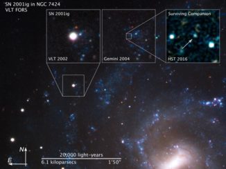 “From stellar evolution, there’s a pretty firm understanding that more massive stars live their lives more quickly and less massive stars have longer lifetimes,” Rest said. “So the hot companion star seems to be further along in its evolution, even though it is now a much less massive star than the one it is orbiting. That doesn’t make sense without a transfer of mass.”