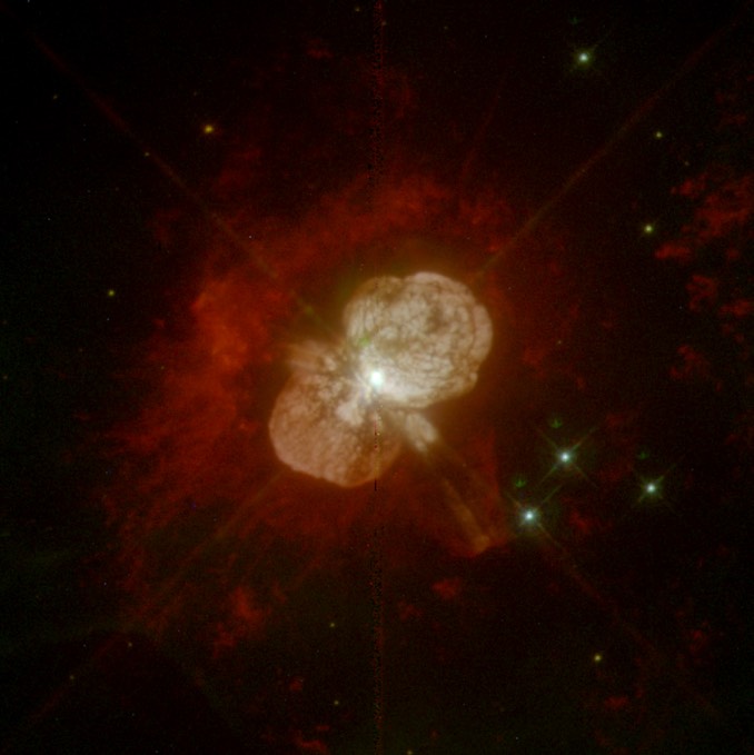 About 170 years ago, Eta Carinae, one of the brightest, most massive stars in the Milky Way, erupted with a titanic blast, releasing almost as much energy as a supernova explosion and becoming at one point the second brightest star in the night sky. Somehow, the star survived the “Great Eruption”, providing an intriguing mystery for astronomers.