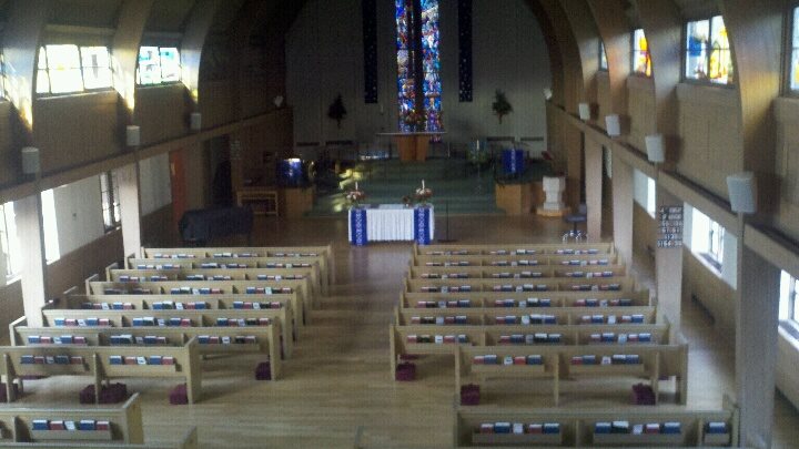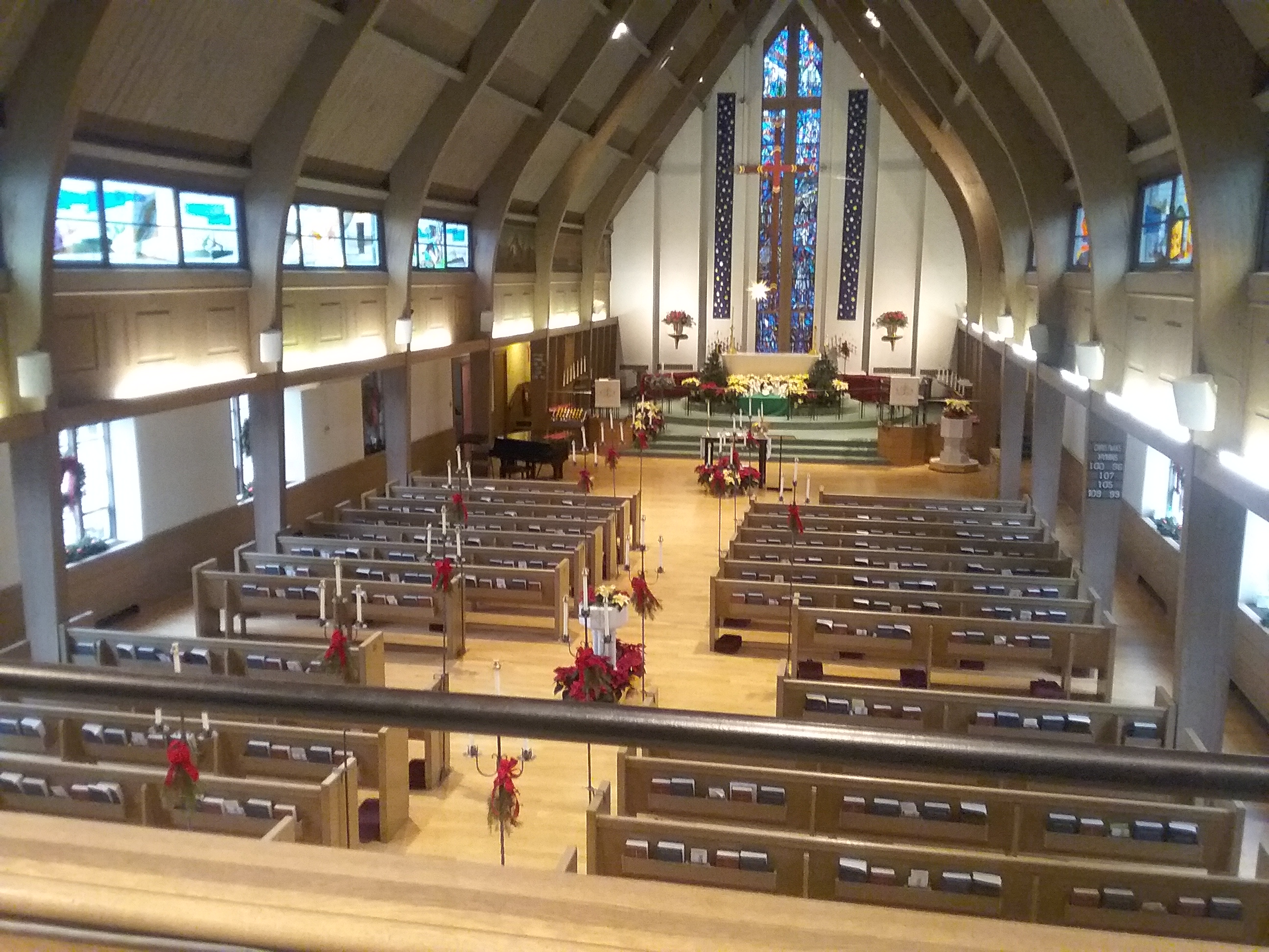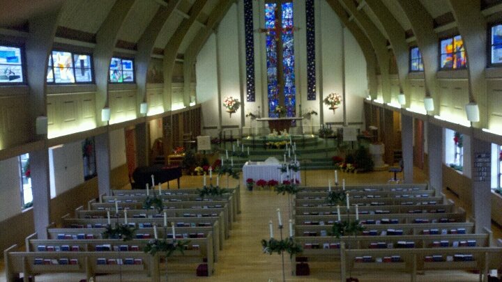Church Decorated for Christmas Too bad Katie is not here to enjoy this and the new members of the choir from our recent merger.