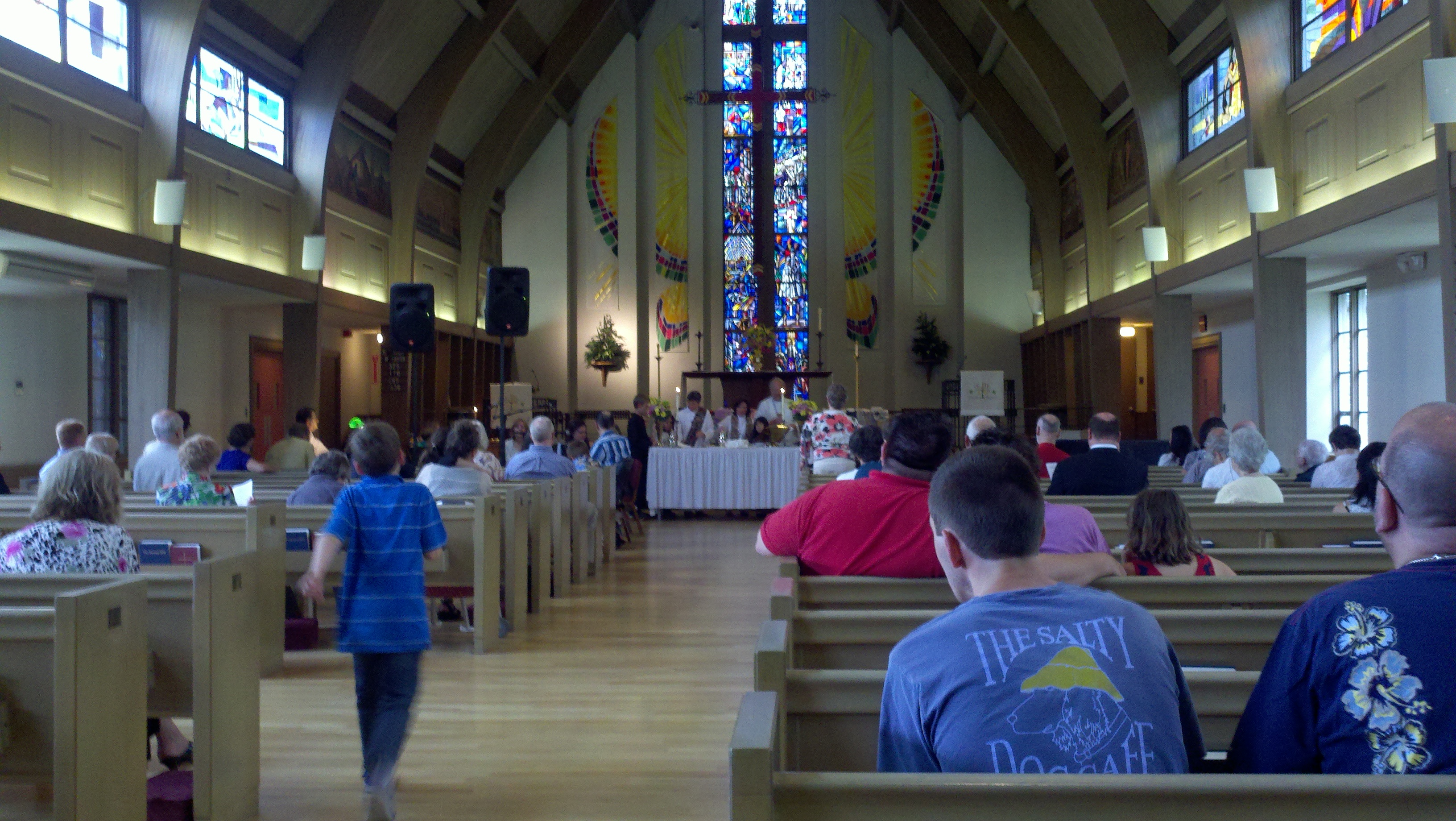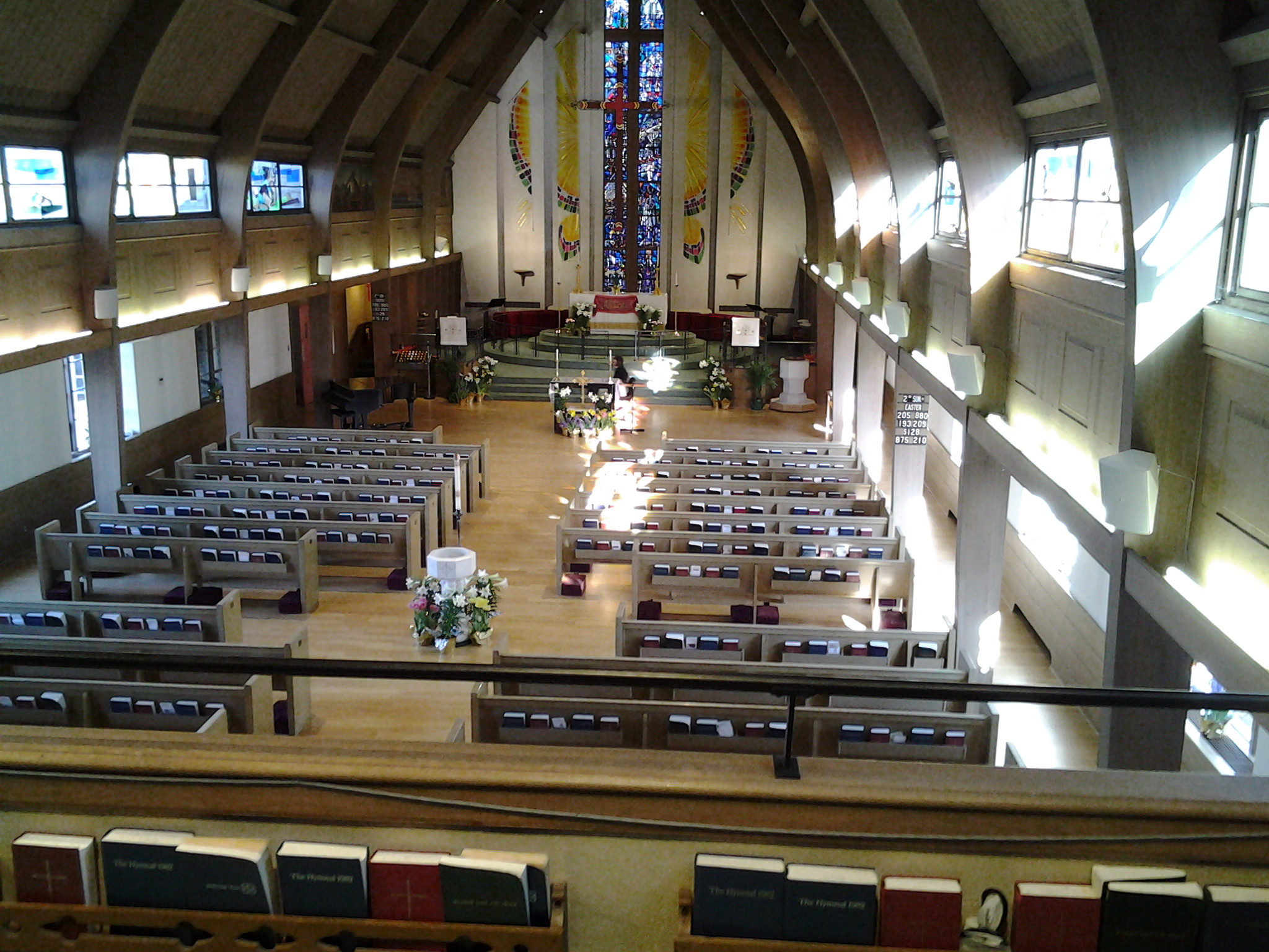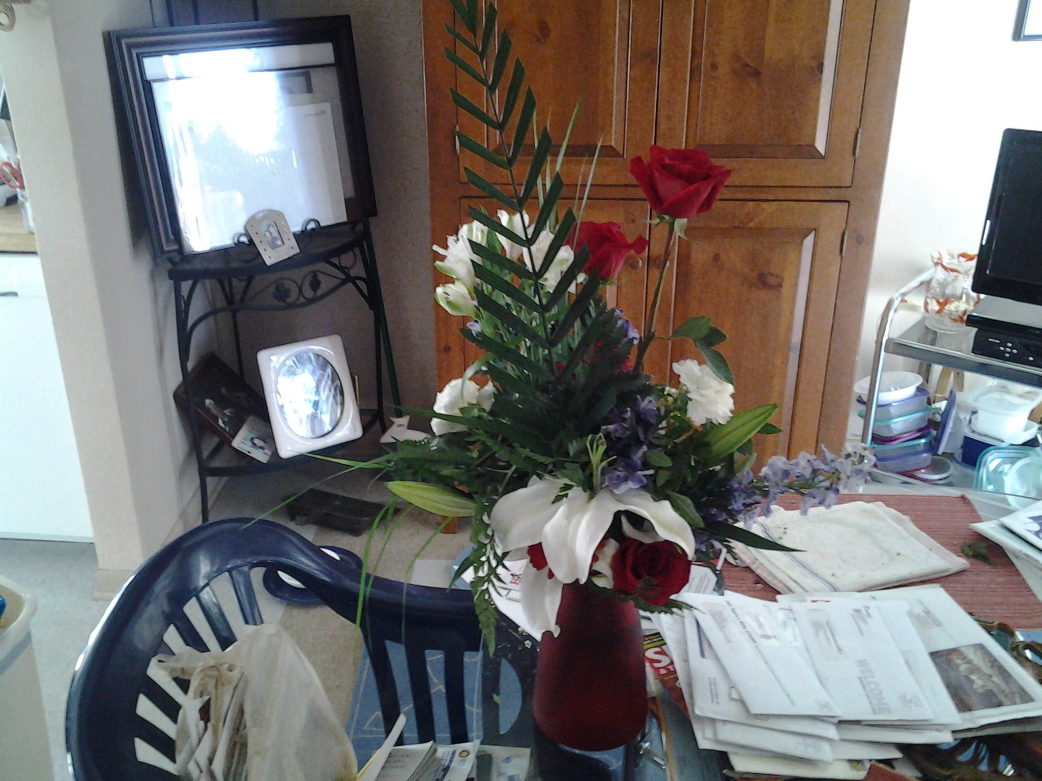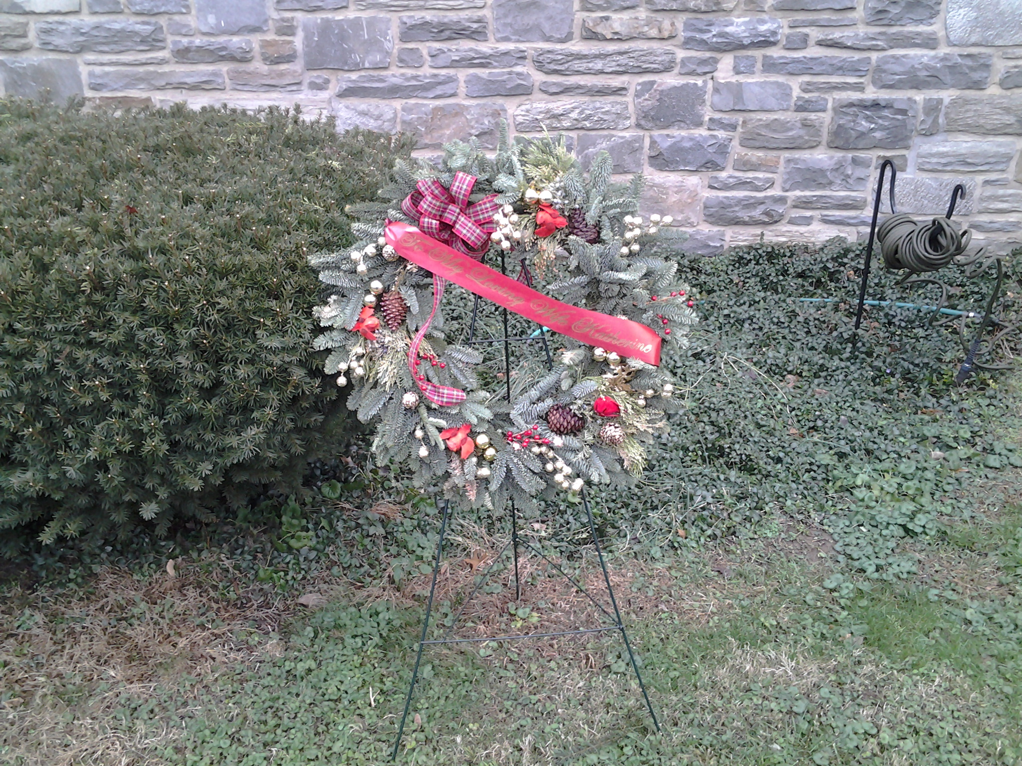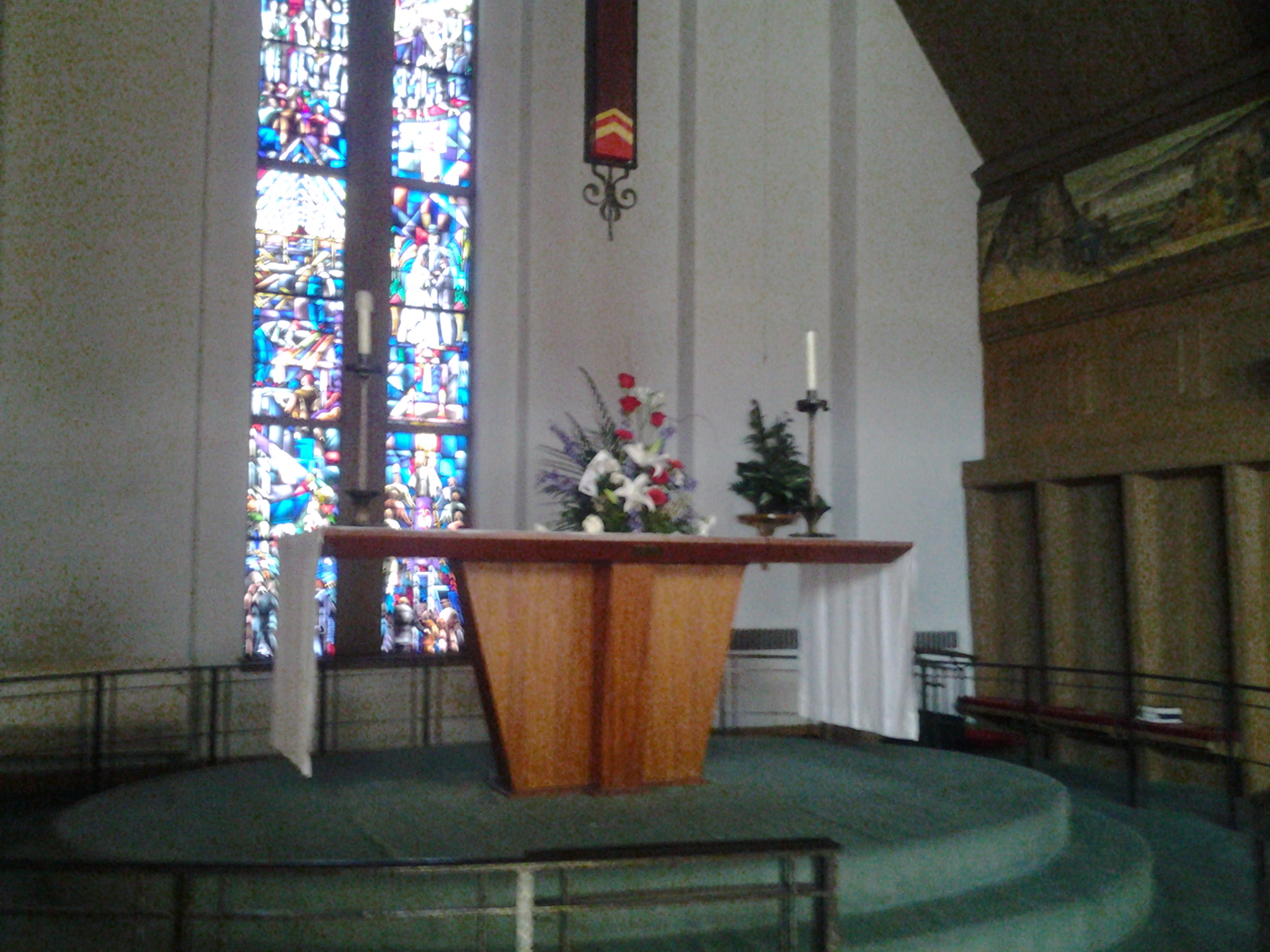 Almost five years since my wife's sudden and tragic death from a very rare complication from pneomonis service with altar flowers in her mrmory (just barely visiblein this image)