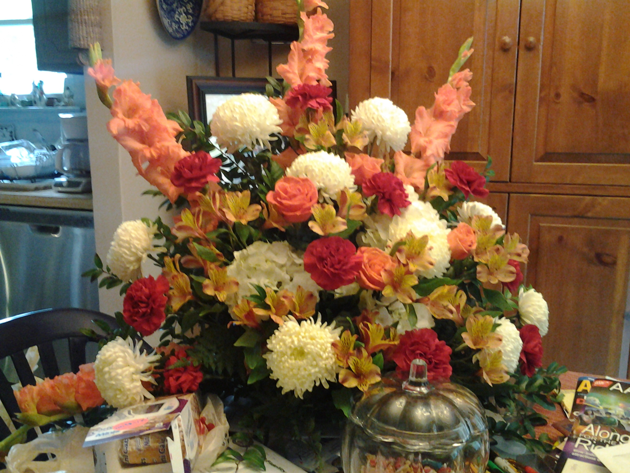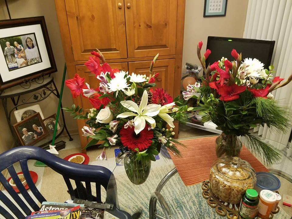 Close up of the altar flowers at my home