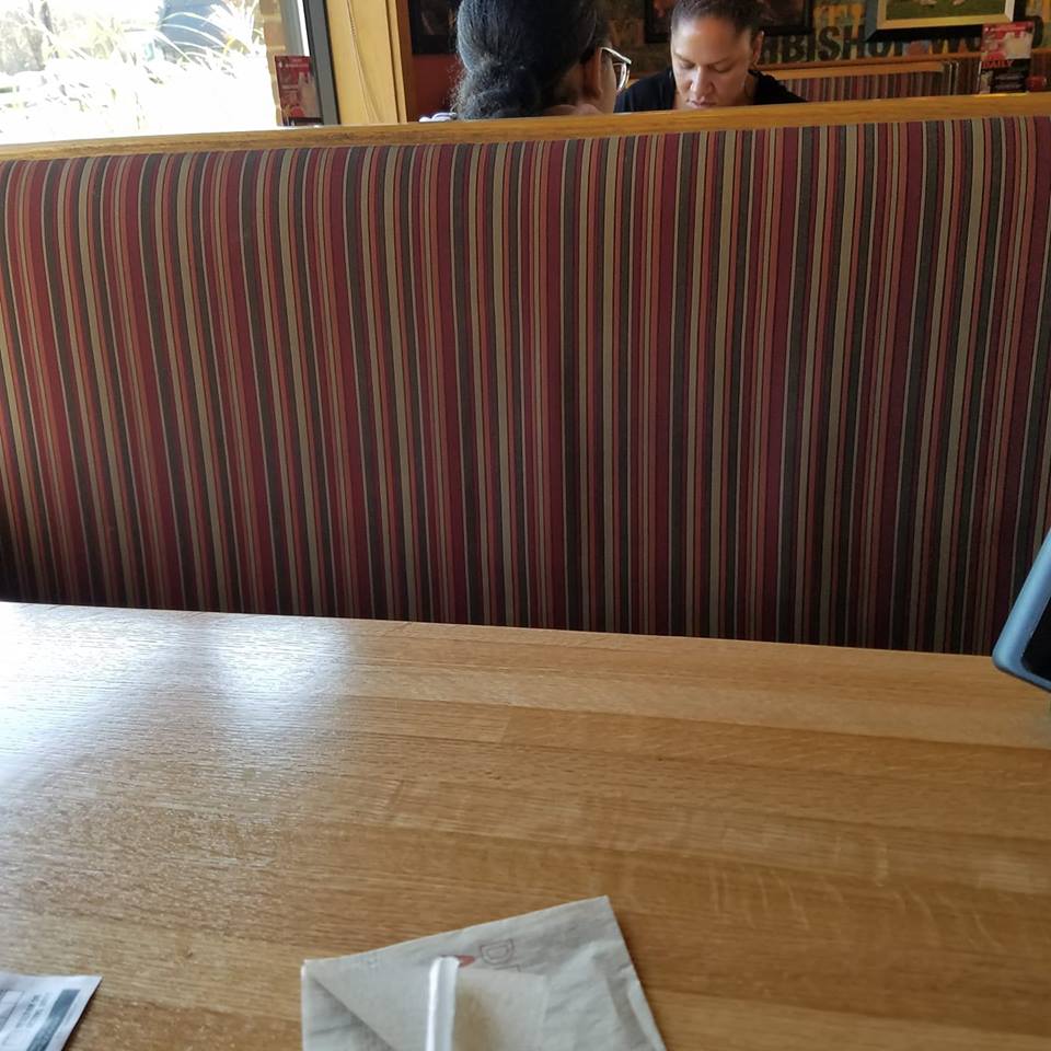 At a local Applebees Restaurant in a Northeatern suburb Of Philadelphia, Pa An empty seat, this where my wife should be but alas she tagically died on dec 18, 2013 from a very rare complication (quite literally a 1 in a Million medical event) from pneumonia in less than 24 hours after entering the hospital