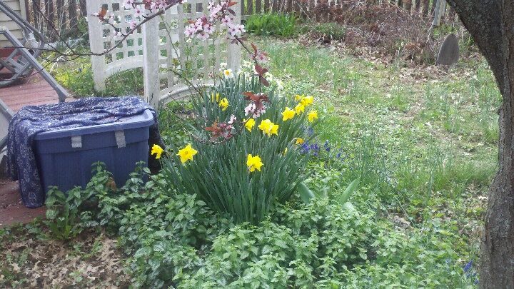 Lower right two Pictures Katie at her favorite hobby: gardening at our Church