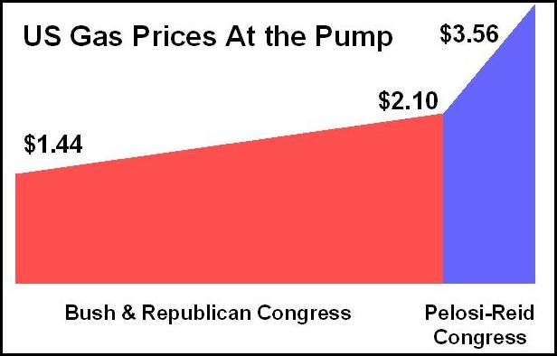 Yes, that's right , China and Cuba are actively exploring oil fields 50 miles from Key West, Florida while U.S. companies are barred from working in this area because of U.S. policy . So, instead of allowing the most environmentally responsible companies to operate there and increase our domestic supply, China , who has a dismal environmental record, is preparing to suck our close, lucrative oil reserves dry. Unbelievable. Investor's Business Daily recently explained how irresponsible the Democrats have been on the energy crisis. They lay into what they consider to be the worst Congress ever for ~ Failing to allow drilling in ANWR. We have, as President Bush noted, estimated capacity of a million barrels of oil a day from this source alone -- enough for 27 million gallons of gas and diesel. But Congress won't touch it, fearful of the clout of the environmental lobby. As a result, you pay through the nose at the pump so your representative can raise campaign cash. ~ Refusing to build new refineries. The U.S. hasn't built one since 1976, yet the EPA requires at least 15 unique 'boutique' fuel blends that can be sold in different areas around the nation. This means that U.S. refinery capacity is stretched so tight that even the slightest problem at a refinery causes enormous supply problems and price spikes. Congress has done nothing about this. ~Turning its back on nuclear power. It's safe and, with advances in nuclear reprocessing technology, waste problems have been minimized. Still, we have just 104 nuclear plants -- the same as a decade ago -- producing just 19% of our total energy. (Many European nations produce 40% or more of their power with nuclear.) Granted, nuclear power plants are expensive -- about $3 billion each. But they produce energy at $1.72/kilowatt-hour vs. $2.37 for coal and $6.35 for natural gas. ~ Raising taxes on energy producers. This is where a basic understanding of economics would help: Higher taxes and needless regulation lead to less production of a commodity. So by proposing 'windfall' and other taxes on energy companies plus tough new rules, Congress only makes our energy situation worse. These are just a few of Congress' sins of omission -- all while India , China , Eastern Europe and the Middle East are adding more than a million barrels of new demand each and every year. New Energy Department forecasts see world oil demand growing 40% by 2030, including a 28% increase in the U.S. " " Americans who are worried about the direction of their country, including runaway energy and food prices, should keep in mind the upcoming election isn't just about choosing a new president. We'll also pick a new Congress.