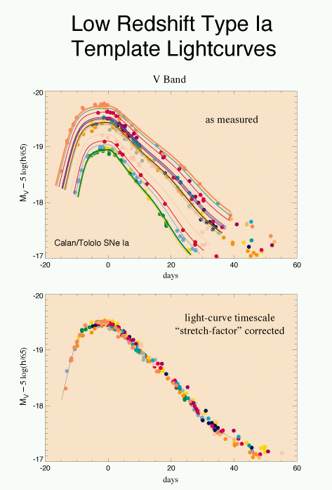 Light curves of Type Ia supernovae. Credits: Hamuy, et al. 1994, Kim 2004