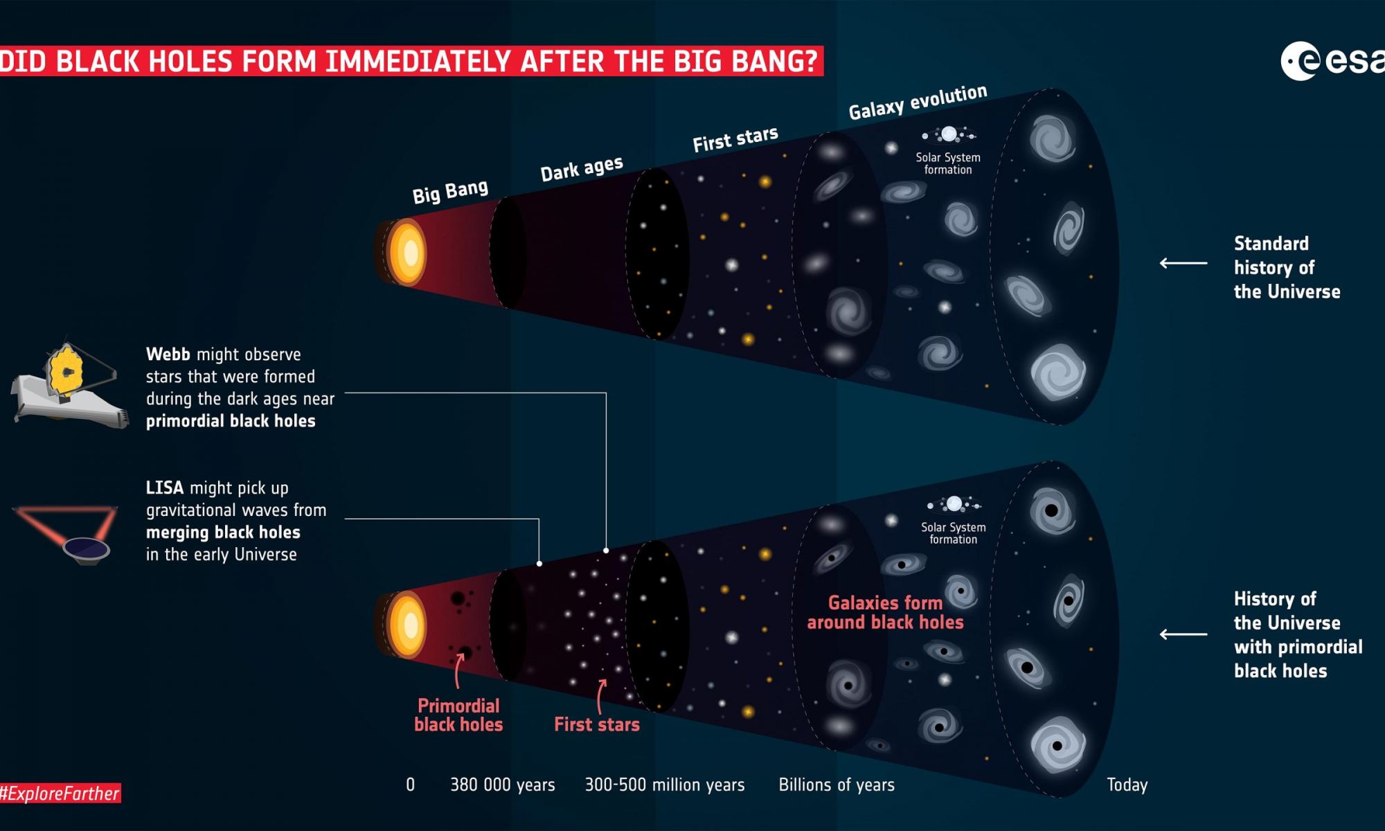 The James Webb telescope could discover evidence of primordial black holes in the near future. Credit: ESA
