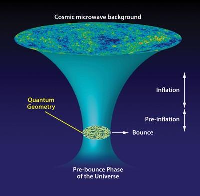 Diagram showing evolution of the Universe according to the paradigm of Loop Quantum Origins. Credit: APS/A. Stonebraker