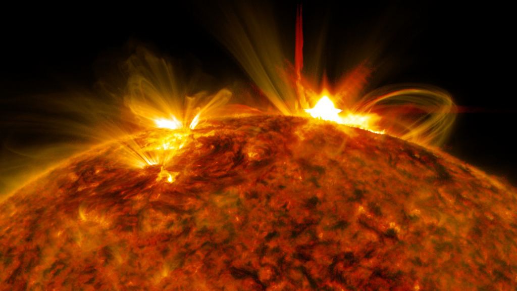 A solar flare, as it appears in extreme ultra-violet light. Credit: NASA/SFC/SDO