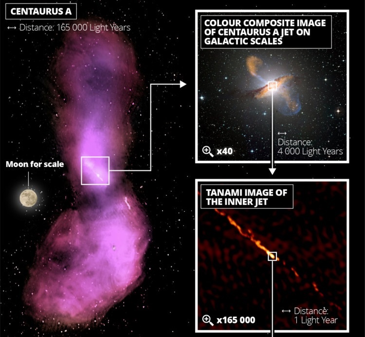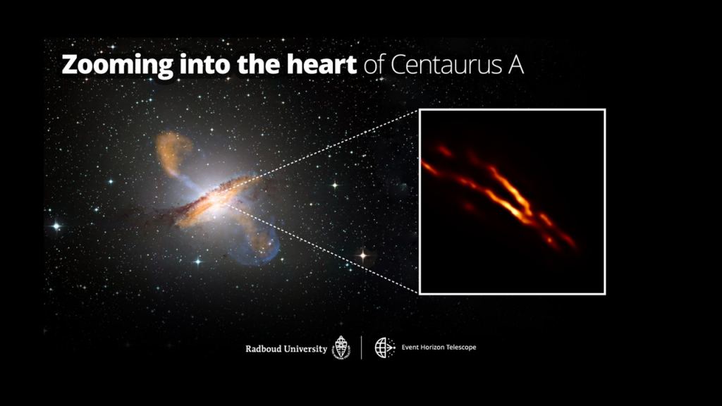 Close-up images of the relativistic jet emanating from Centaurus A. Credit: M. Janssen, H. Falcke, M. Kadler, E. Ros, M. Wielgus et al.