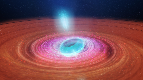 An artist’s impression of the accretion disc around the supermassive black hole that powers an active galaxy. Credit: NASA/Dana Berry, SkyWorks Digital