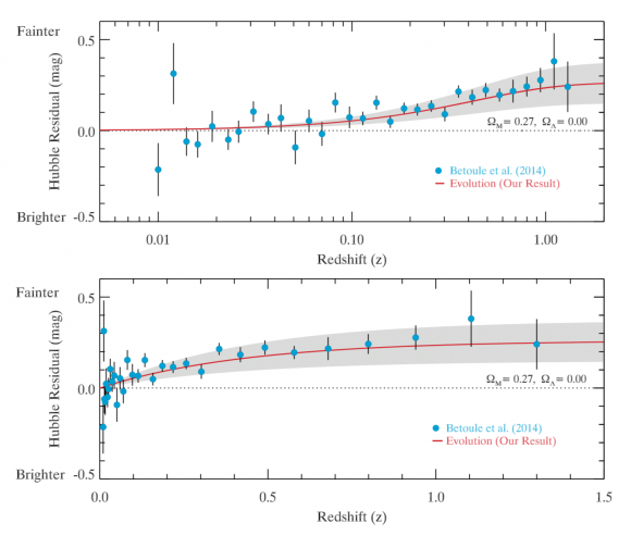 A comparison of supernova evolution with cosmic expansion. Credit: Kang, Yijung, et al.