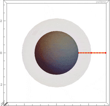 Illustration of a gradually precessing orbit similar to the precessing orbit of the smaller smaller black hole