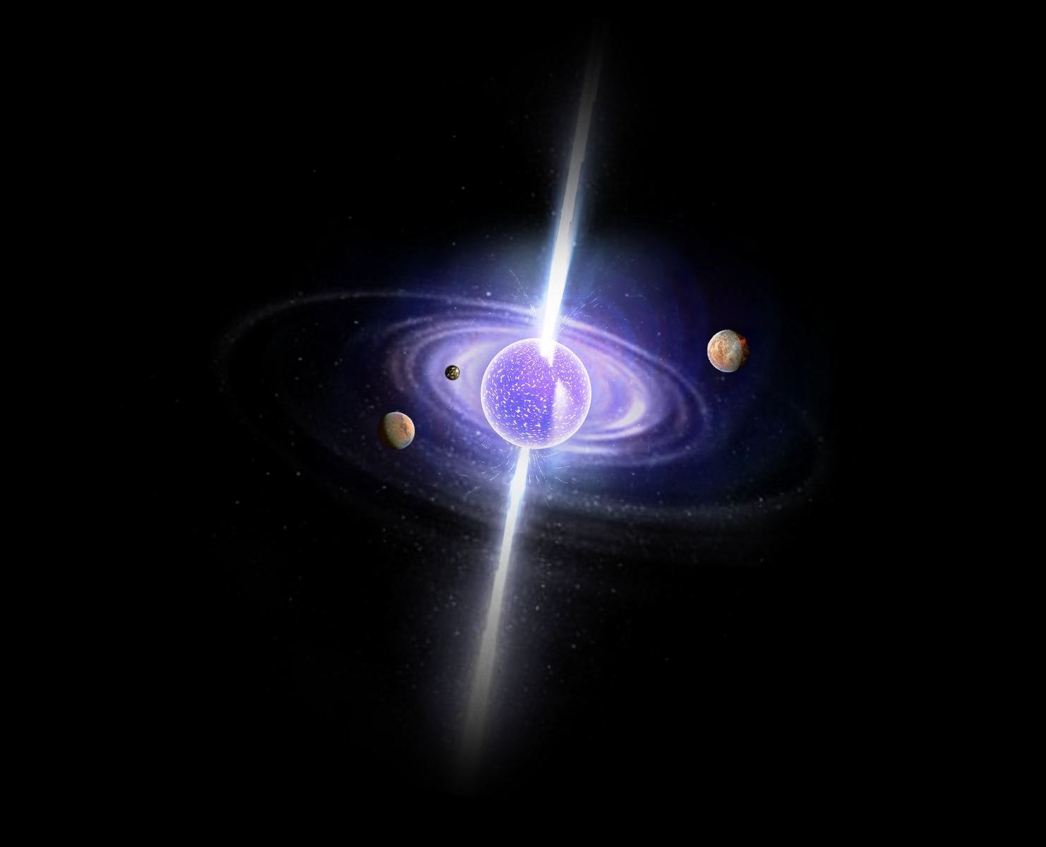 Artist’s impression of the planets orbiting PSR B1257+12. Credit: NASA/JPL-Caltech/R. Hurt (SSC)