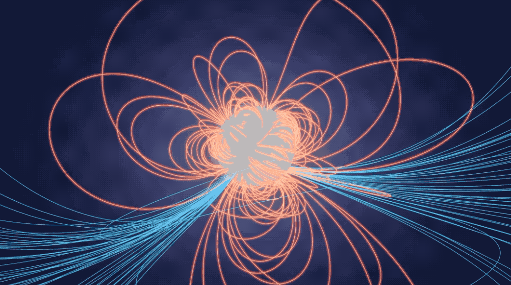 This illustration shows a pulsar with its magnetic field lines shown in blue. The beams emitting from the poles are what washes over our detectors as the dead star spins. Image Credit: NASA