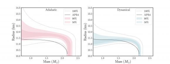 Gravitational waves give a relation between neutron star mass and size. Credit: Pratten, et al