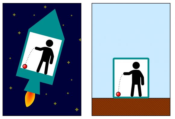 In general relativity, acceleration is equivalent to gravity. Credit: Markus Poessel, via Wikipedia