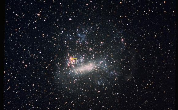 A 1987 image of SN 1987A in the Large Magellanic Cloud, taken by the Kuiper Airborne Observatory. Image Credit: By NASA/Ames Research Center