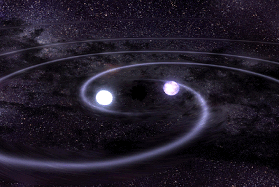 Artist impression of a binary white dwarf system similar to J1634+44 (Credit : Dana Berry)