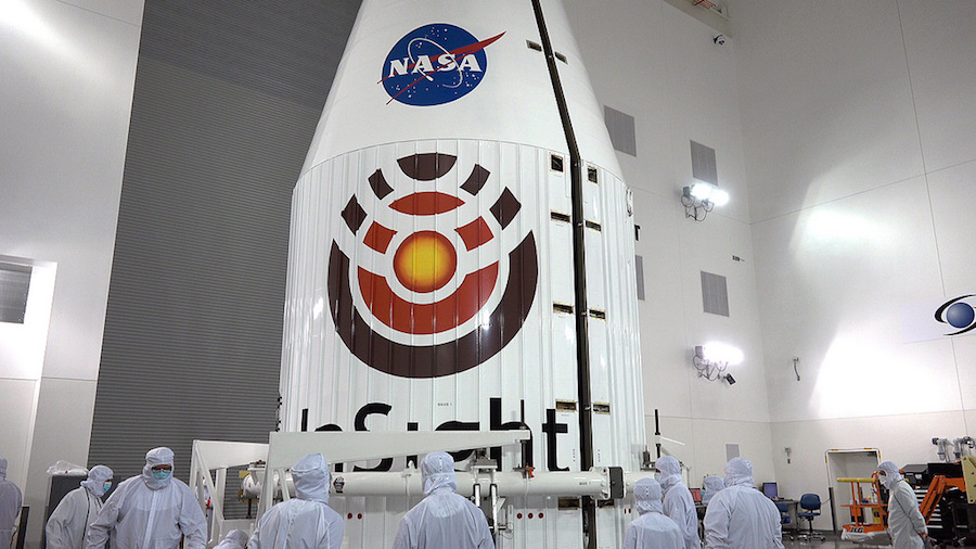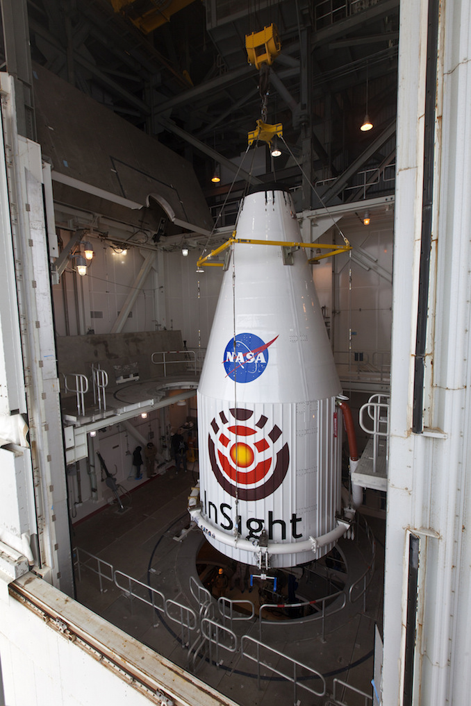 Now cocooned inside a heat shield and the nose shroud of an Atlas 5 rocket that will send it to Mars, NASA’s InSight lander is awaiting launch May 5 from Vandenberg Air Force Base, California.