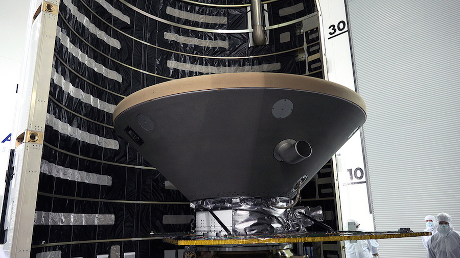 The shroud measures around 13 feet, or 4 meters, in diameter and will jettison from the Atlas 5 rocket approximately four-and-a-half minutes after liftoff.