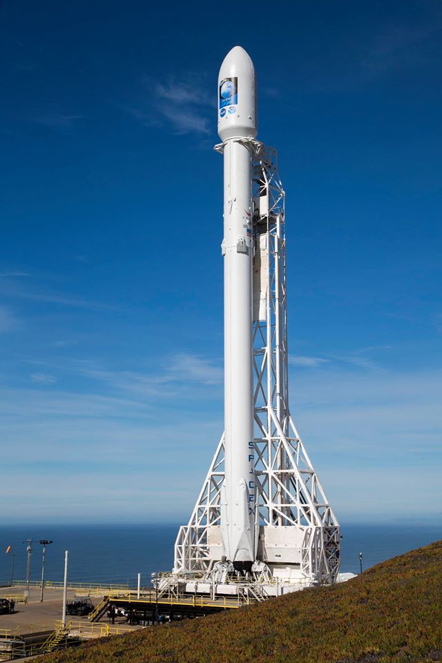 SpaceX Falcon 9 erected at Vandenberg AFB launch pad in California in advance of Jason-3 launch for NASA on Jan. 17, 2016.