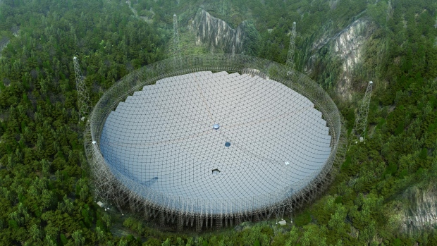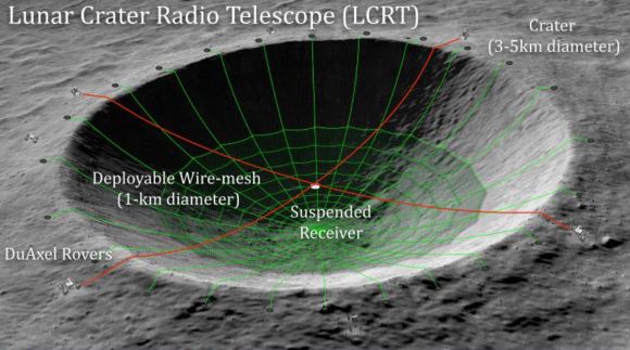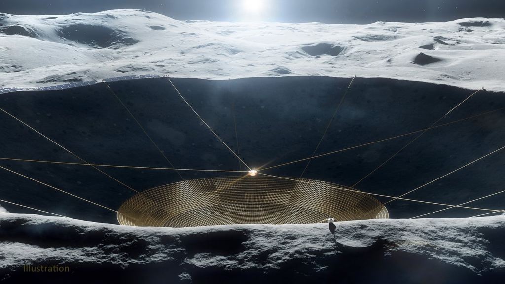Proposed design of a radio telescope in a lunar crater. Credit: Saptarshi Bandyopadhyay