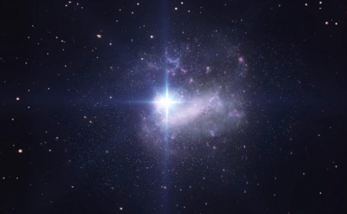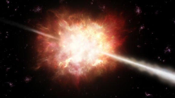 Artist’s impression of a gamma-ray burst. Credit: ESO/A. Roquette