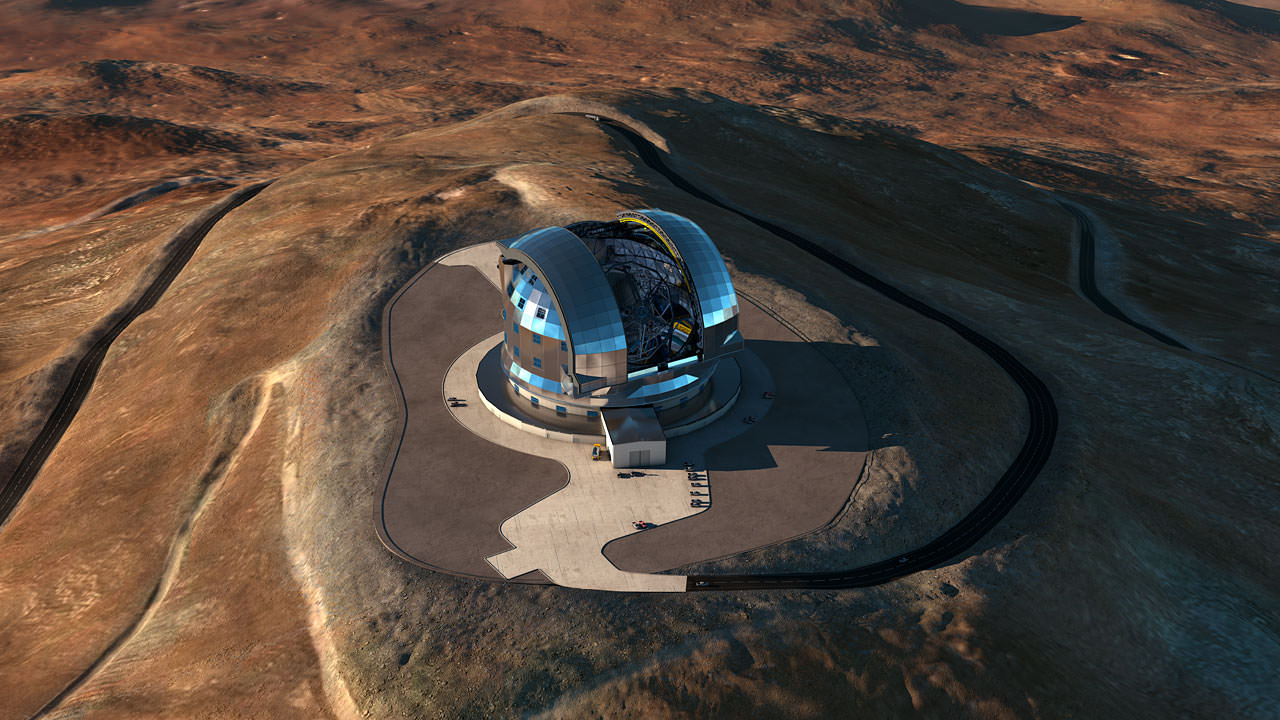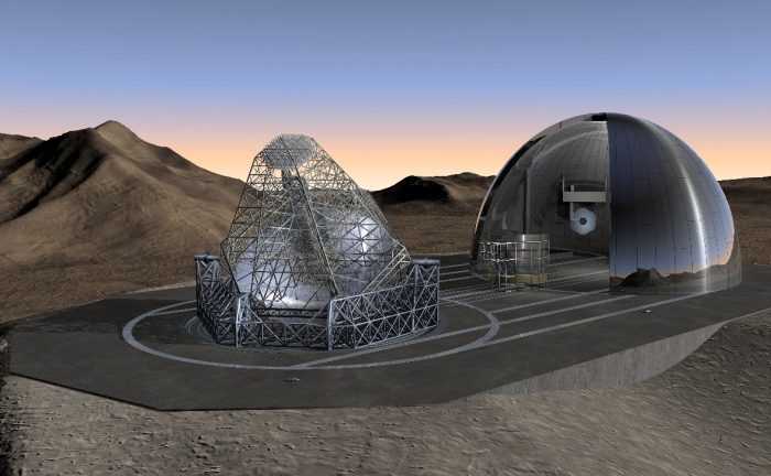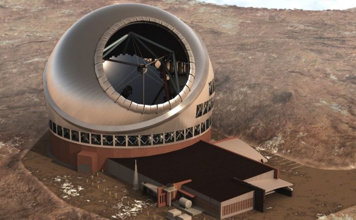 An artist’s illustration of the Thirty Meter Telescope at its preferred location at Mauna Kea, Hawaii. Credit: TMT International Observatory