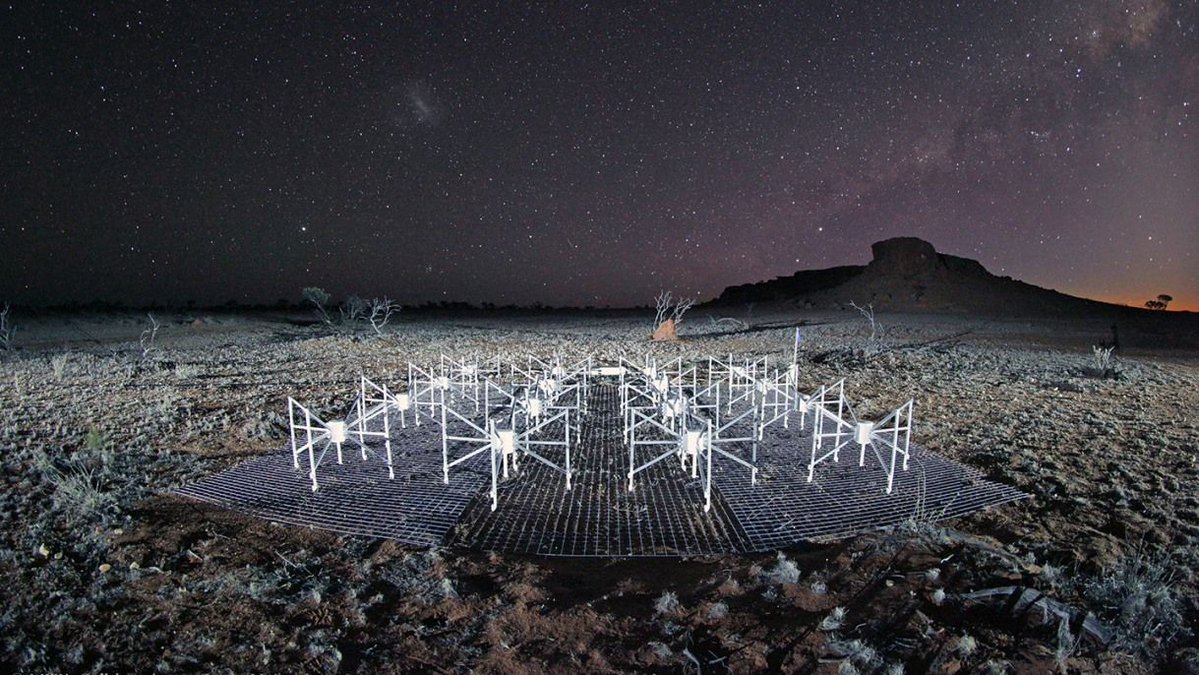 Part of the Murchison Widefield Array at night. Credit: John Goldfield/Celestial Visions
