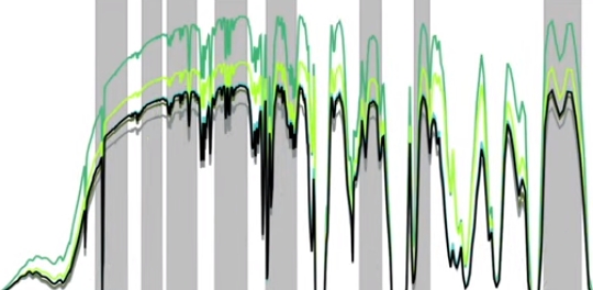 Image: Extinction effects for a terrascope at the Hill Sphere distance, roughly 4 Earth radii. Here, most of the infrared spectrum becomes usable for lensing. Image credit: David Kipping.