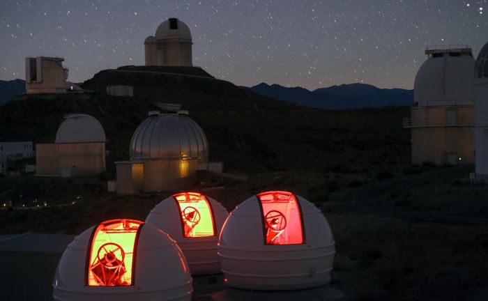 The ExTrA telescopes are sited at ESO’s La Silla Observatory in Chile. They will be used to search for and study Earth-sized planets orbiting nearby red dwarf stars. Credit: ESO/Emmanuela Rimbaud