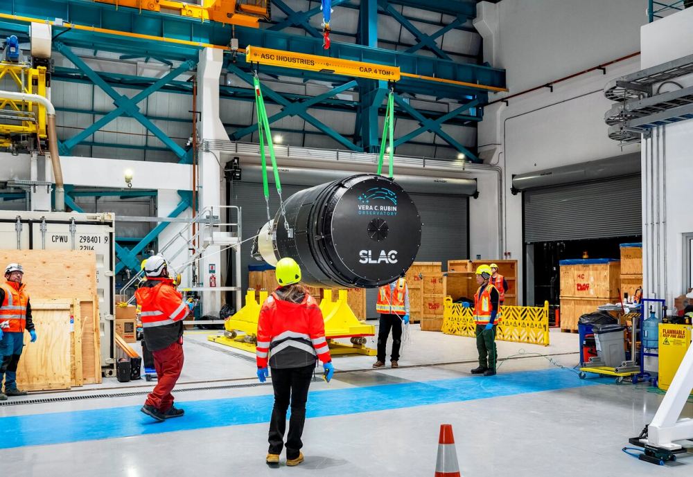 The 3200-megapixel LSST Camera arrived at Vera C. Rubin Observatory on May 16th and is being readied for installation. Courtesy NOIRLab.