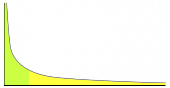 Example of a power law distribution. Lower values on the x-axis (sizes of particles in this case) lead to large quantities (y-axis). Credit – Hay Kranen / PD / Wikipedia