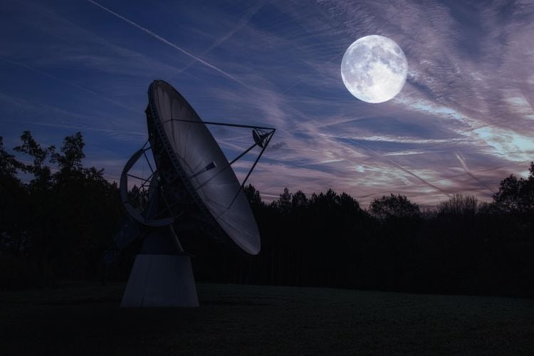 File photo of our moon and a radio Telescope No credit reference availble
