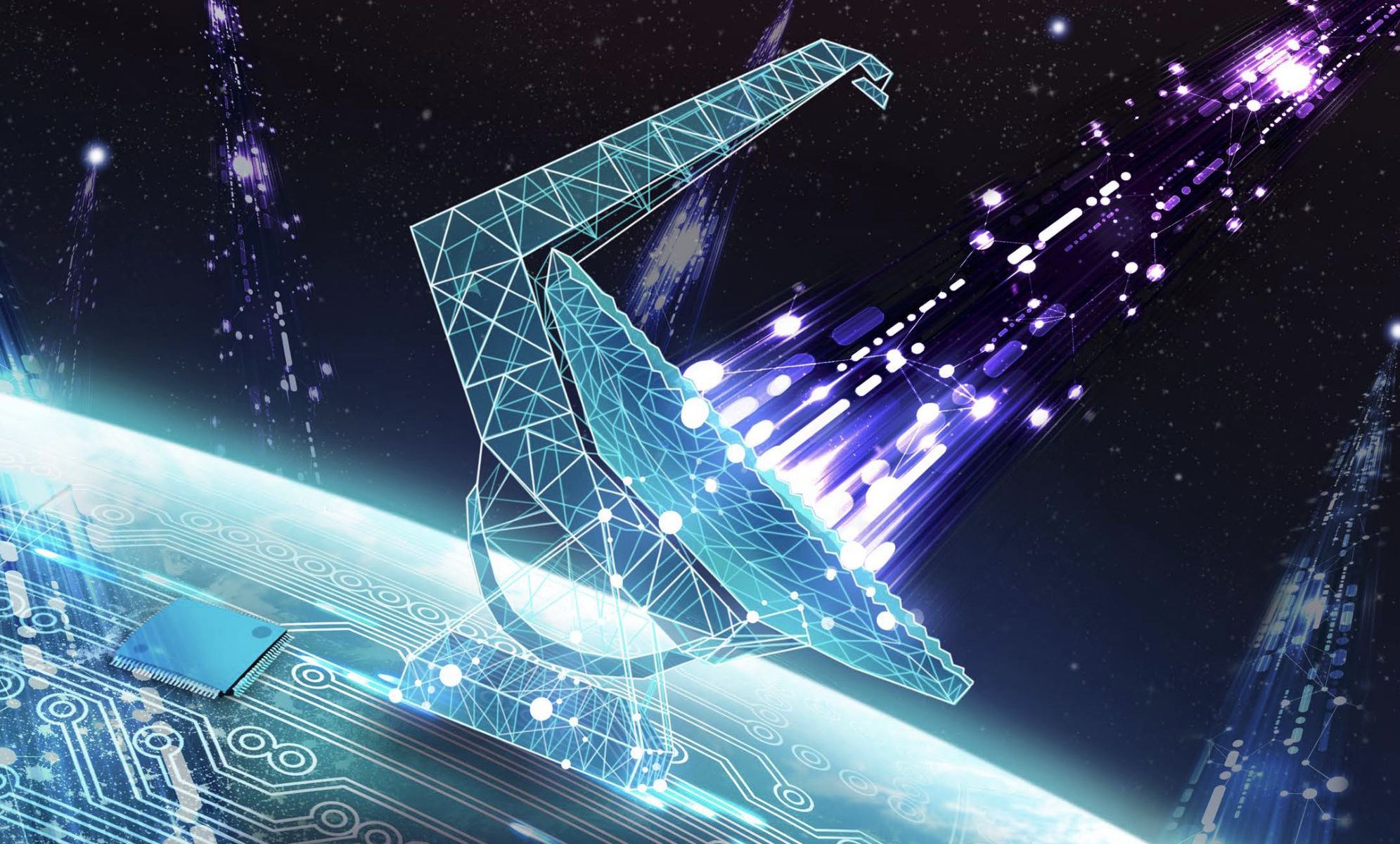 Artist’s impression of Green Bank Telescope connected to a machine learning network. Credit: Breakthrough Listen/Danielle Futselaar.