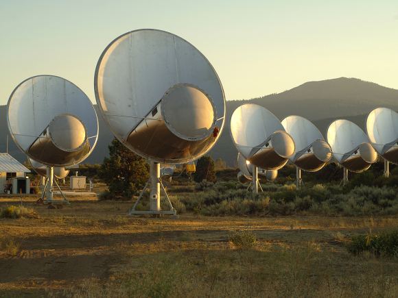 Image of the Allen Telescope Array in Hat Creek, CA, scanning the skies for signals from extraterrestrial civilizations. (Credit: Seth Shostak/SETI Institute)