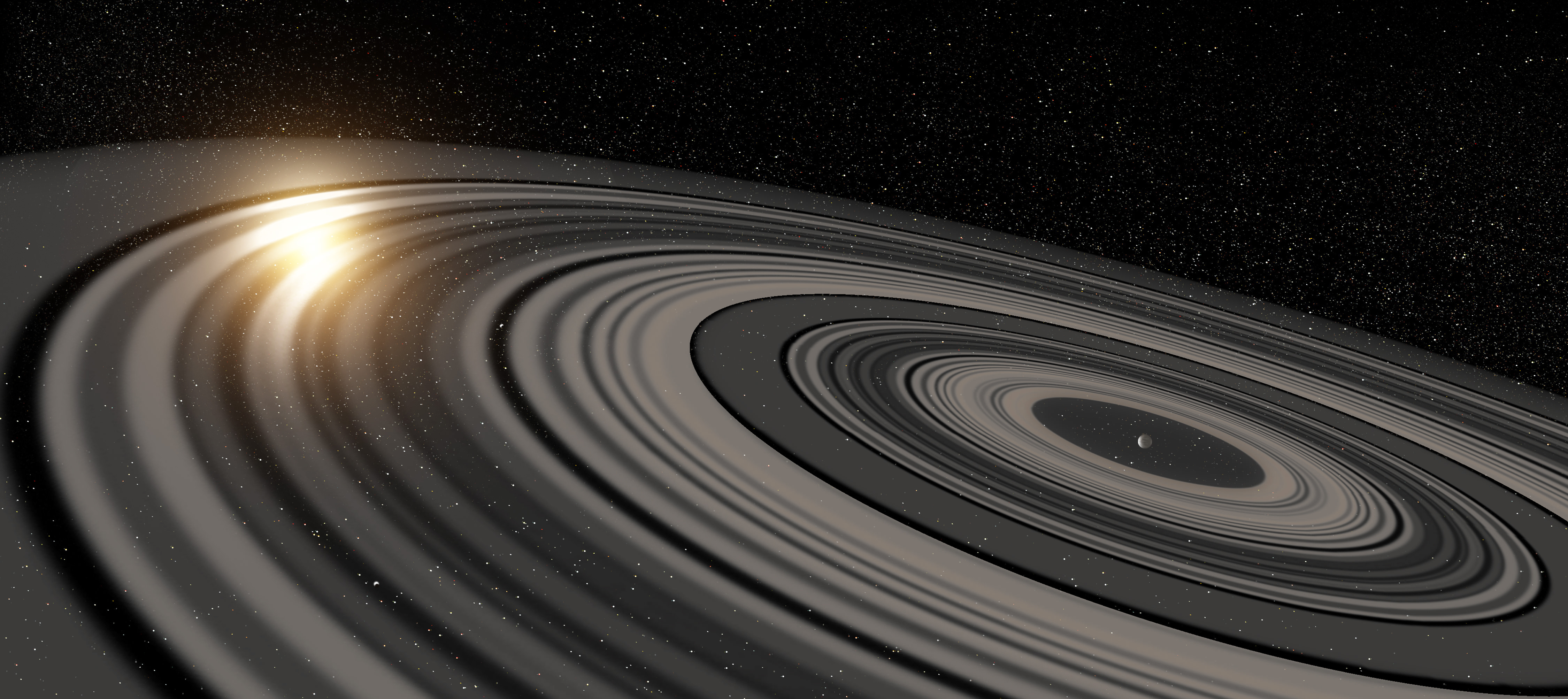 This illustration depicts a hypothetical uneven ring of dust orbiting KIC 8462852, also known as Boyajian's Star or Tabby's Star. Credit: NASA/JPL-Caltech