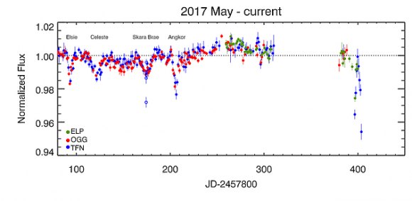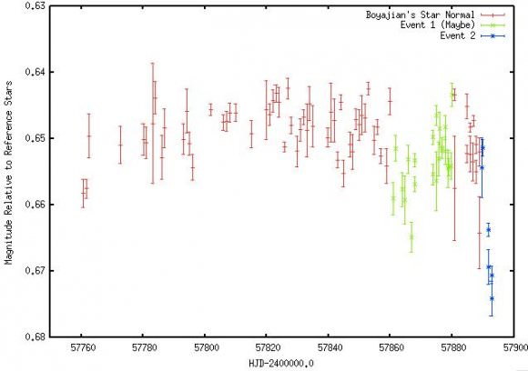 Preliminary analysis of incoming data of KIC 8462852, showing the apparent dip. Credit: Matthew Muterspaugh/Tennessee State University/CEISEM
