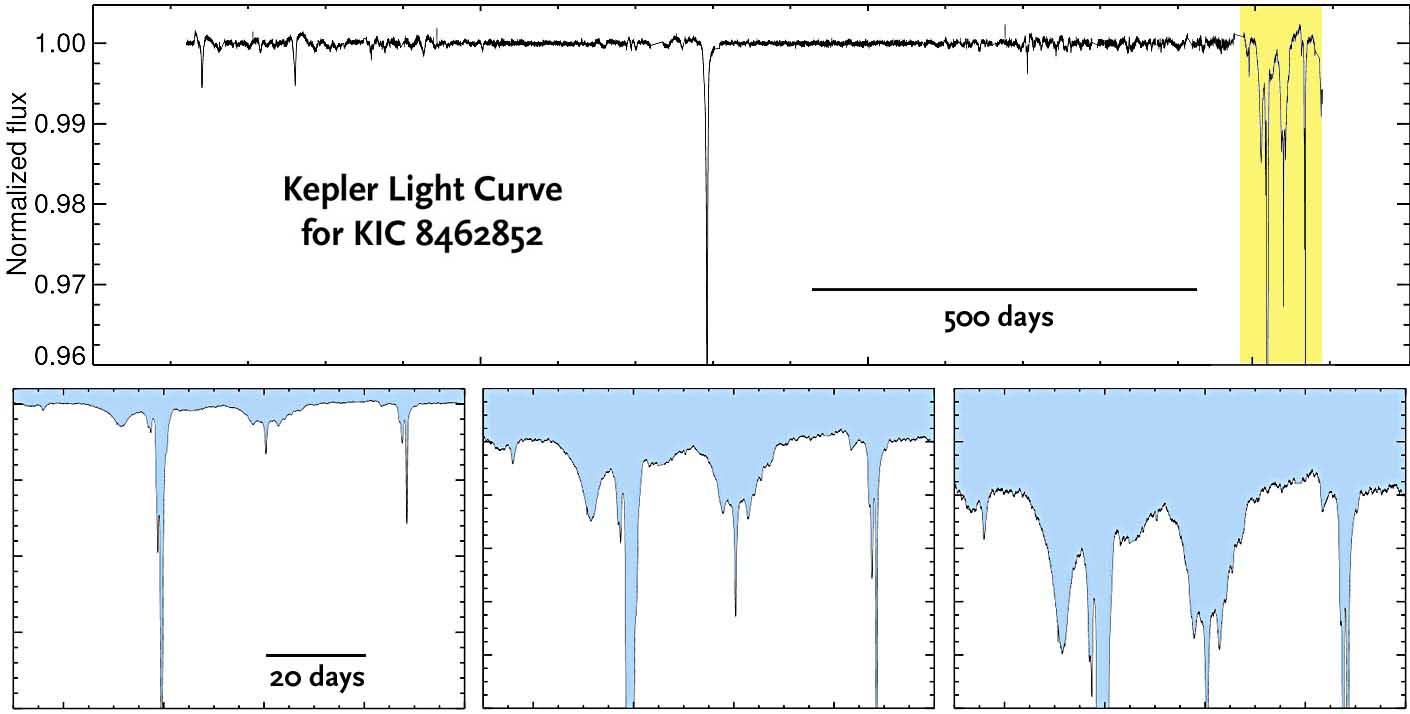 by NASA’s Kepler and Spitzer space telescopes suggest that its unusual light signals are likely from dusty comet fragments,