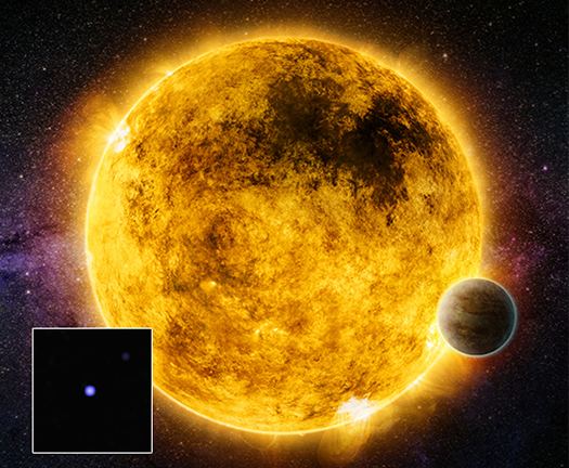 An artist’s illustration of Epsilon Eridani and two exoplanets. EE is a K-dwarf star that’s only 10.5 light years from the Sun. It may host exoplanets, but their existence is controversial. Epsilon Eridani is young, only a billion years old, and it’s undergoing a tumultuous youth at this age. But it’ll calm down eventually, and could be a stable, hospitable star for tens of billions of years. Image Credit : By NASA, ESA, G. Bacon – Public Domain,from Wikipedia