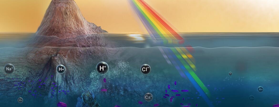 This figure from the paper illustrates the coupling between surface irradiance, spectral tuning, and functional diversity over microbial rhodopsin evolution. (b) is particularly interesting because it shows how the colour tuning of extant and ancestral microbial rhodopsins appear to explore the spectral window not already occupied by other biological pigments such as chlorophylls and bacteriochlorophylls, shown in gray. Image Credit: Sephus et al. 2022.