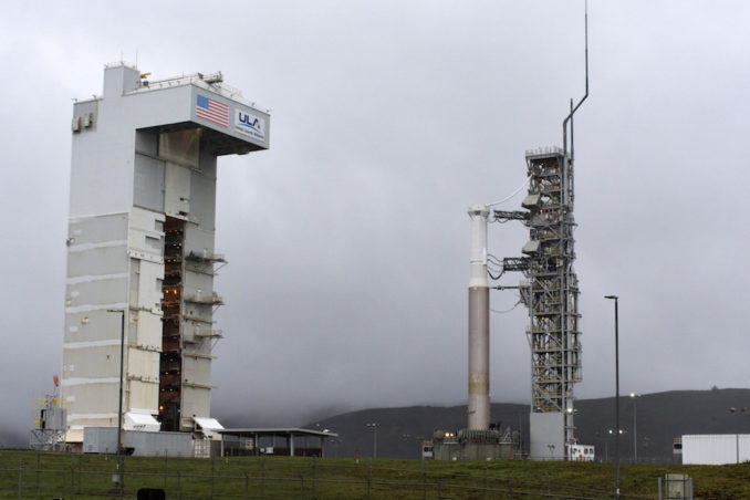 Flock of 5 pelicans fly close recon over unveiled Delta 4 Heavy rocket set to launch NROL-37 spy satellite