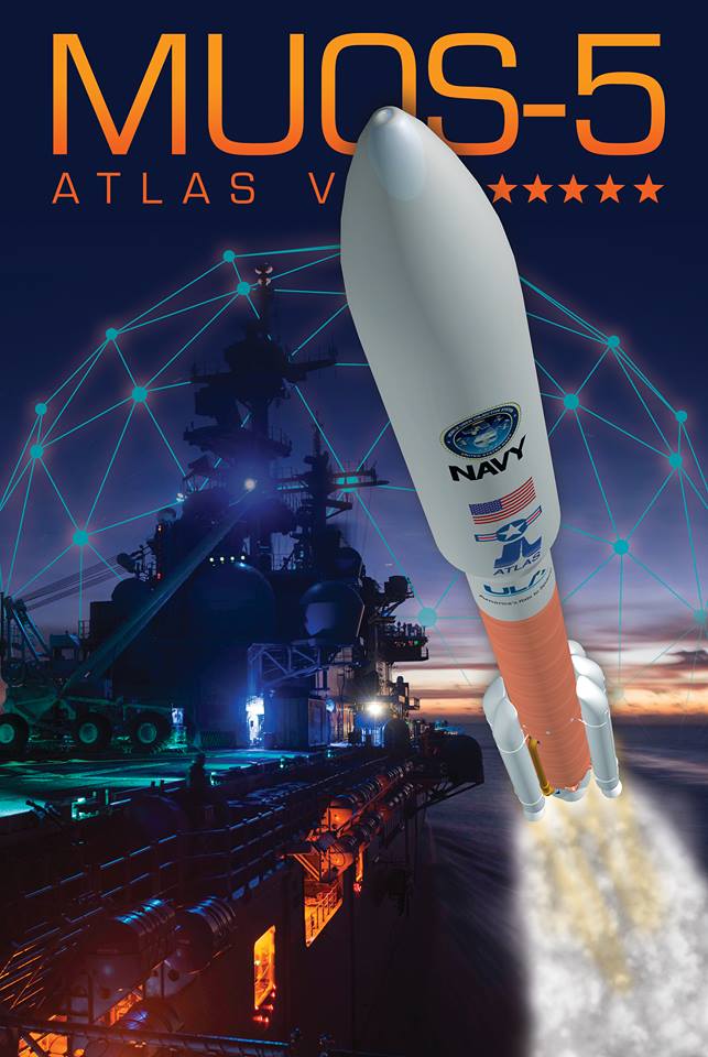 The Navy’s fifth Mobile User Objective System (MUOS) is encapsulated inside an Atlas V five-meter diameter payload fairing. Credit:United Launch Alliance