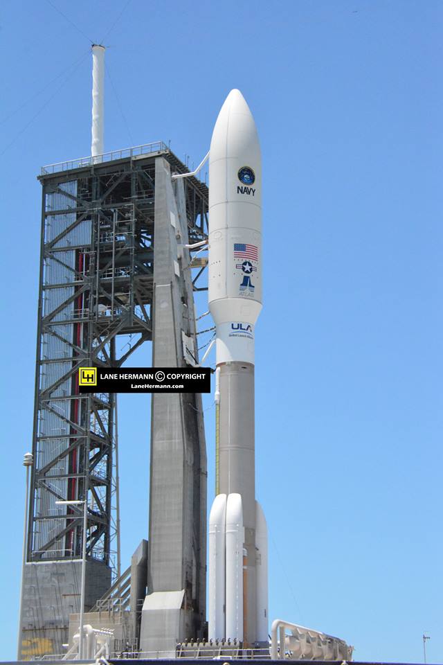 United Launch Alliance (ULA) Atlas V rocket poised for launch on MUOS-5 mission from Space Launch Complex-41 on June 24, 2016.