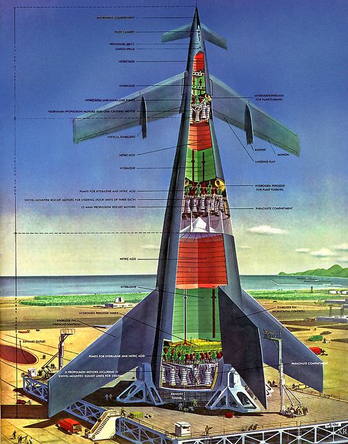 Verner Van Braun's Proposal from Collier's Magazine, 1952, Artist Impresion of a launch