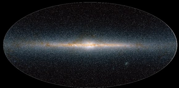 Image: An all-sky view of stars in our Galaxy – the Milky Way – and neighbouring galaxies,