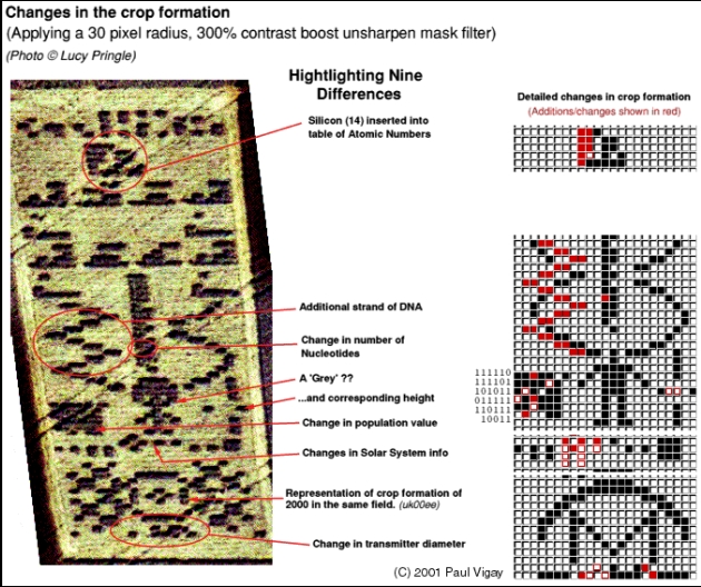 Obviously, he wanted us to pay special attention to that contradiction… and the “alien DNA number”… which has now mysteriously reappeared in an English wheat field, in 2001.