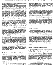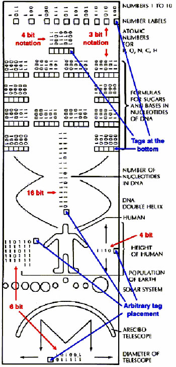 These molecular building blocks are put together to form a long molecule of DNA comprising about four billion links in the chain. The molecule is a double helix. In some way this molecule is important for the clumsy looking creature at the center of the message. That creature is 14 radio wavelengths or 5 feet 9.5 inches tall.