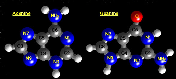 • Below that, the formulas for the basic chemical make-up of the five main molecules of DNA