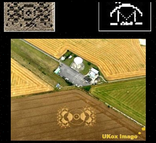 This Summer, precisely one year after a strange fractal "crop glyph" appeared in a field just outside the Chilbolton Radio telescope grounds, in Hampshire, England, another, even stranger glyph appeared (above). According to Darcy Ladd, Manager of the Chilbolton Radio Observatory, in an interview with Colin Andrews, the image appeared “suddenly on the morning of August 14th.”